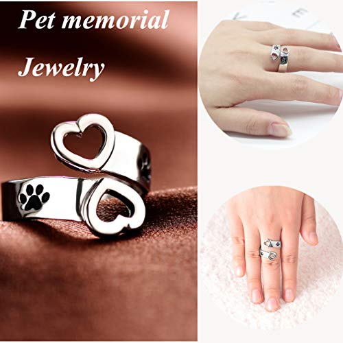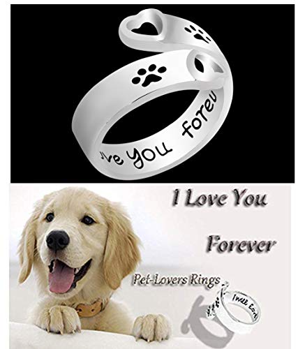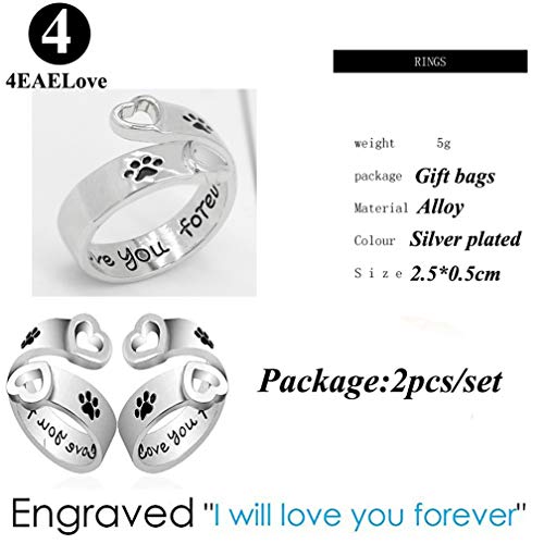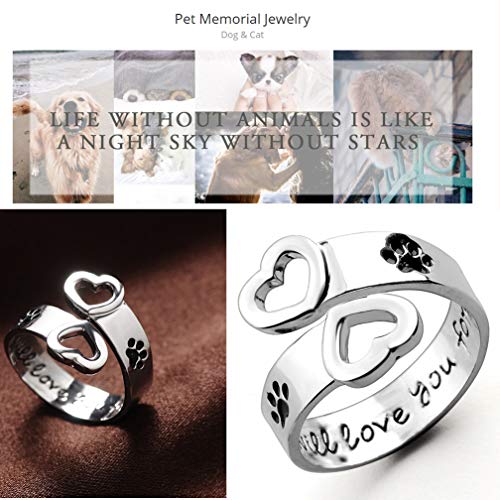 Paw Openning Ring Heart Pet Memorial Ring Letter I Will Love You Forever Curved Paw Prints Rings Dog Cat Memorial Black…