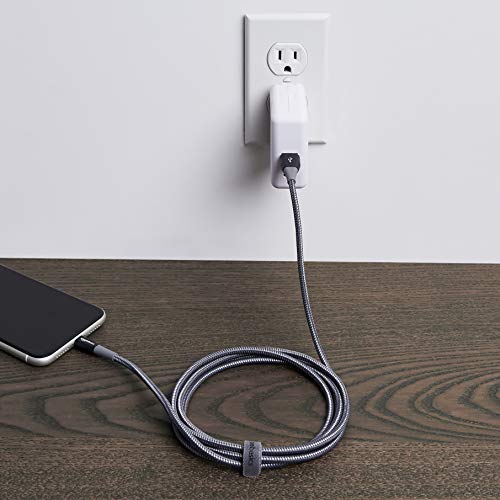Amazon Basics Double Nylon Braided Lightning to USB Cable – MFi Certified Apple iPhone Charger, Dark Gray, 6-Foot (Durability Rated 20,000 Bends) – upgrade