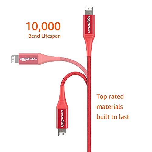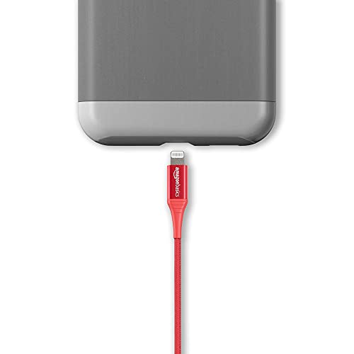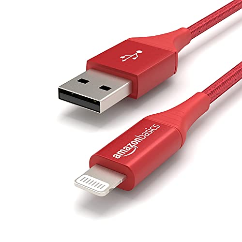 Amazon Basics Nylon USB-A to Lightning Cable Cord, MFi Certified Charger for Apple iPhone, iPad, Red, 3-Ft