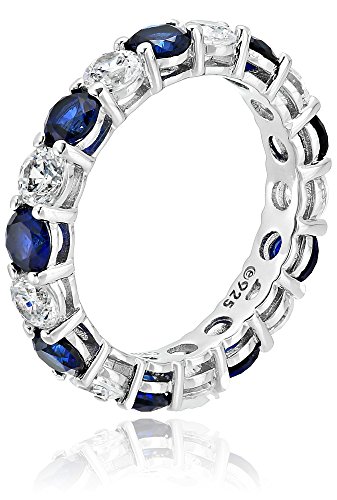 An Amazon brand – Platinum-Plated Sterling Silver All-Around band ring set with Created Sapphire and Swarovski Zirconia accents