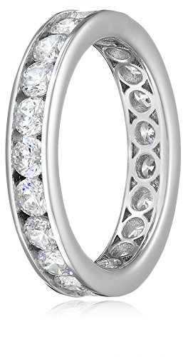 Amazon Collection Platinum-Plated Sterling Silver Infinite Elements Cubic Zirconia Channel Set All-Around Band Ring