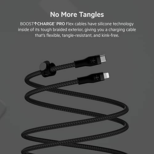 Belkin BoostCharge Pro Flex Braided USB Type C to Lightning Cable (3M/10ft), MFi Certified 20W Fast Charging PD Power…