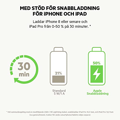 Supports Fast Charge for iPhone 8 or later, iPad Pro 10.5-inch, iPad Pro 12.9-inch 2nd gen (0-50% charged in 30 minutes (requires USB-C to Lightning cable, not included)