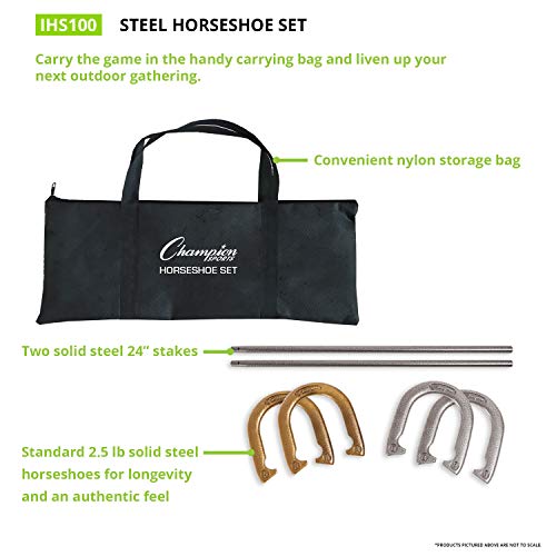 Champion Sports Horseshoe Set: Traditional Outdoor Lawn Game includes Four Professional Solid Steel Horseshoes with…