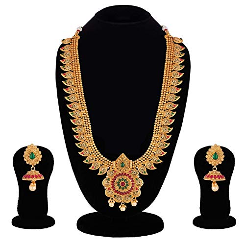 Crunchy Fashion Bollywood Style Gold Plated Traditional Indian Jewelry Necklace Set with Earrings & Tika for Women/Girls