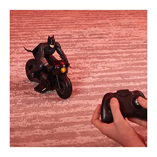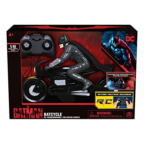 BATCYCLE RC: Race into Gotham City with the remote-control Batcycle. This RC vehicle features an easy-to-drive remote control, authentic movie styling, working headlights and a fixed Batman rider figure!