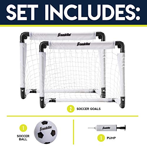 Franklin Sports Kids Mini Soccer Goal Set – Backyard/Indoor Mini Net and Ball with Pump – 22″ x 17″ Goal Size, White/Black