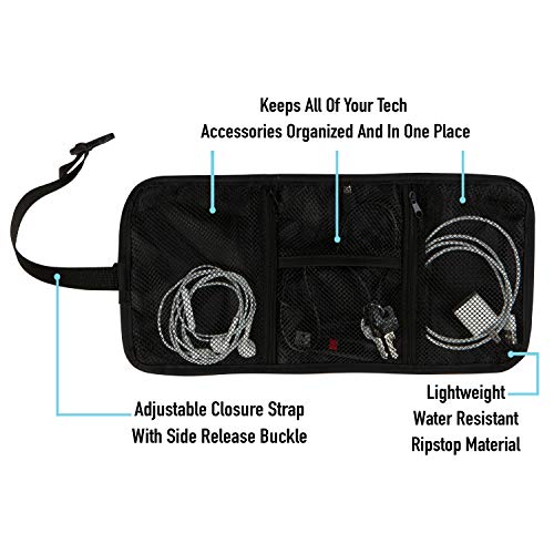 Traveling with your phone, iPad, tablet and computer? Your life is about to become easier with the Gforce tech accessory organizer. Designed with 3 separate mesh pockets to store your chargers, headphone and batteries keeping them neat and detangled. The mesh pockets allow you to see what is in each pocket without having to open. The organizer folds up with an adjustable closure strap and side release buckle. The case is water resistant and made of rip stop material protecting all of your gadgets precious accessories. The organizer fits perfectly in your handbag, suitcase, briefcase, backpack or car. Make your everyday life easier with this great tech organizer.