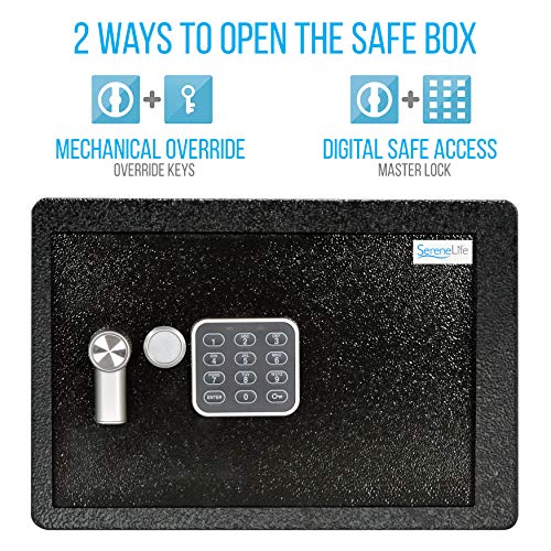 Serene Life Home Security Electronic Lock Box – Safe with Mechanical Override, Digital Combination Lock Safe, LED Low…