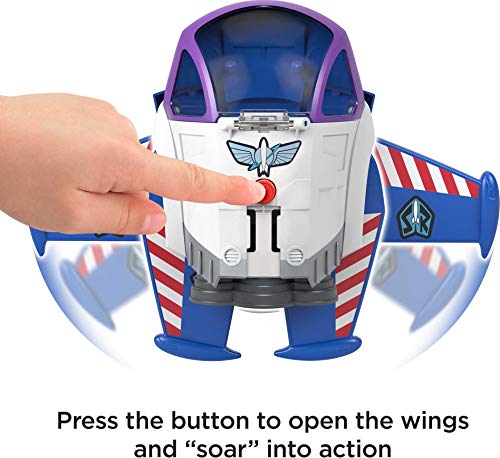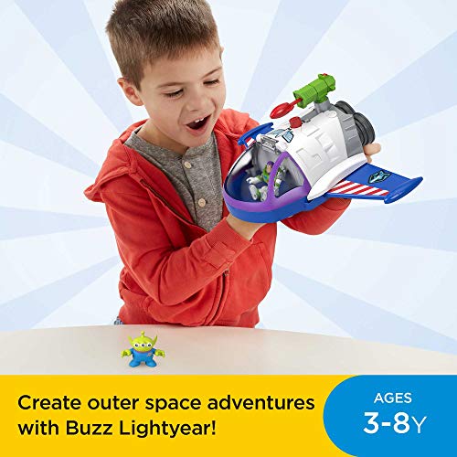 Young Space Rangers can soar into exciting imaginary adventures through outer space with this Disney and Pixar Toy Story Buzz Lightyear Space Mission playset from Fisher-Price. Place the Buzz Lightyear figure in the cockpit of the spaceship, push the Power Pad to open the wings, and send Buzz Lightyear “flying” out to battle Emperor Zurg (or the cat). Collect additional Imaginext figures, vehicles and playsets featuring all their favorite characters from the Toy Story films for more exciting action! (Each sold separately and subject to availability.) Imaginext Imagine What’s Next!