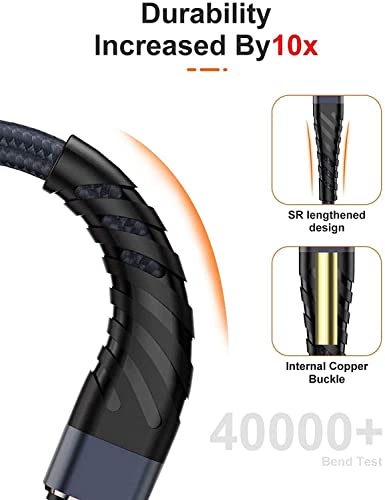 【Military grade material】: Strong military fibre, the most flexible, powerful and durable material, makes tensile force increased by 200%. Special Strain Relief design, can bear 10000+ bending test. Premium nylon braided Lightning cable adds additional durability and tangle free