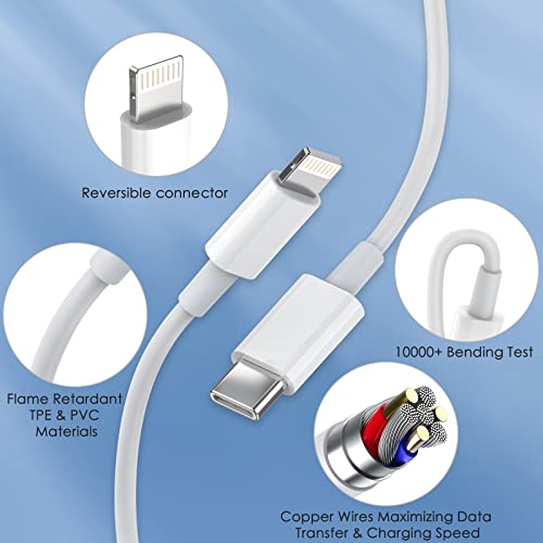 【Apple MFi Certified 6FT Type C to Lightning Cable】: In addition to a 25W USB C Wall Charger, we provide a 20W 6FT USB-C to lightning cable, which adopts ultra-strong ABS connector and pre-eminent TPE jacket, making it flexible and tangle-free, and data transfer speed up to 480Mbps.