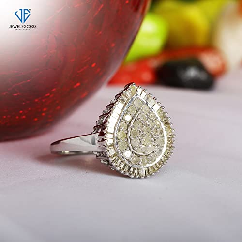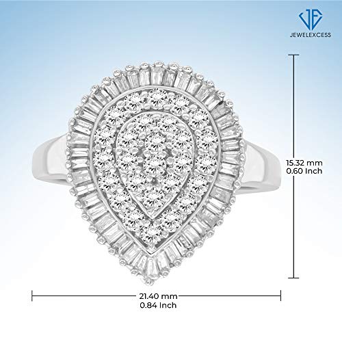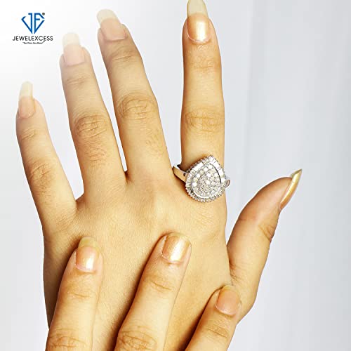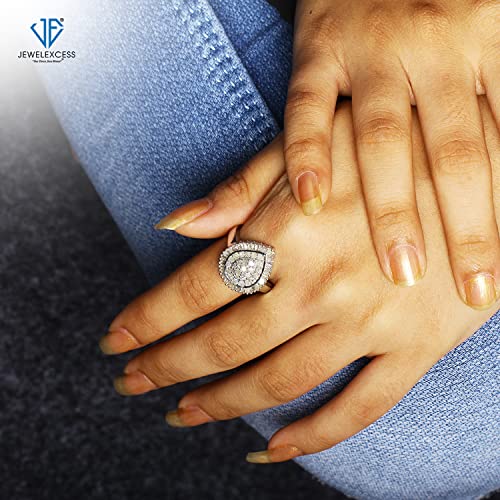 JEWELEXCESS White Diamond 1 Carat Ring with Sterling Silver or 14K Gold over Silver for Women & Girls | Teardrop Halo…