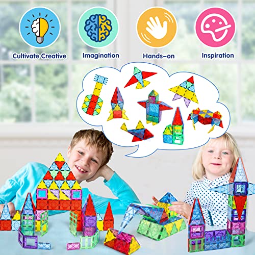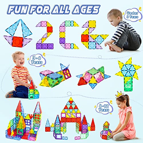 【PERFECT GIFT FOR ANY AGE】🎁 Magnet building tiles clear color magnetic building blocks playboards for preschool, pretend play and more. Entertaining for single or multiple parties and feel the sense of achievement together. Our magnet toys for 3+ year old is the best gift choice on Children’s Day, kids birthday, Christmas etc.