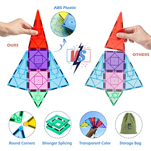 【POWERFUL TILE MAGNETS】✨ Different with other traditional building toys which are easy to fall down, our magnet building blocks are easily to build and hold with strong magnets. Magnet tiles took double-layer internal designed to support the magnetic building set to be more stronger and stable that children don’t have to worry about breaking them. Easily to build house, castle, aerobat , rocket , and other buildings. Childs aged 3 4 5+ can enjoying the fun of building and learning while playing.