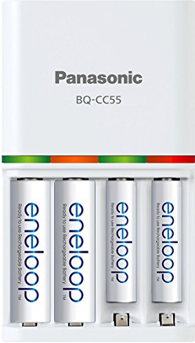 Panasonic K-KJ55MCA4BA Advanced Individual Battery 3 Hour Quick Charger with 4 AA eneloop Rechargeable Batteries, White