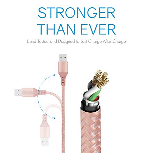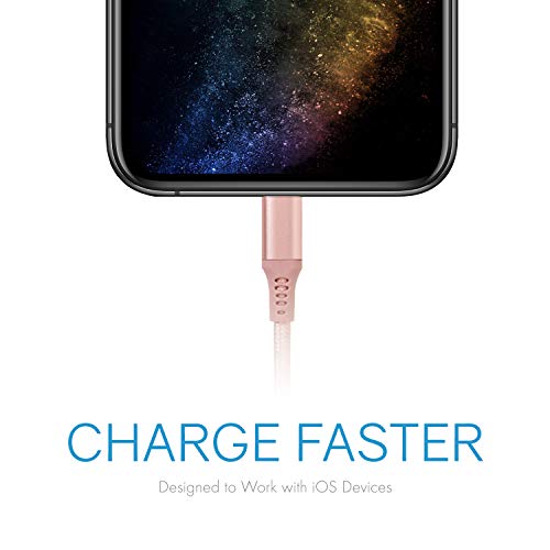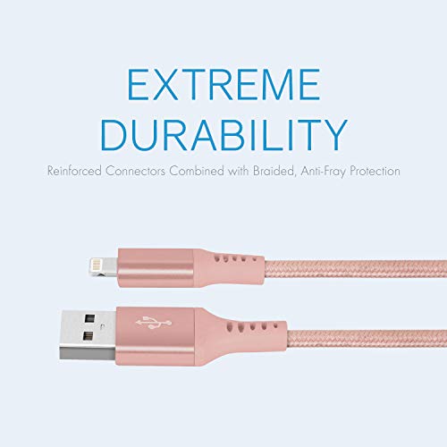 Realm Nylon Braided Lightning to USB A – MFi Certified Apple iPhone Charger, 5ft, Rose Gold