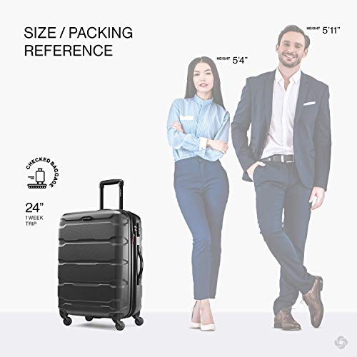 Samsonite Omni PC Hardside Expandable Luggage with Spinner Wheels, Checked-Medium 24-Inch, Black