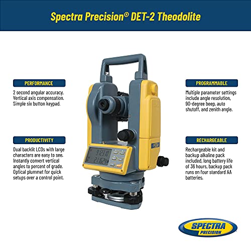 Spectra Precision DET-2 Digital Electronic Theodolite, Construction Surveying Equipment Set, Rechargeable and Alkaline…