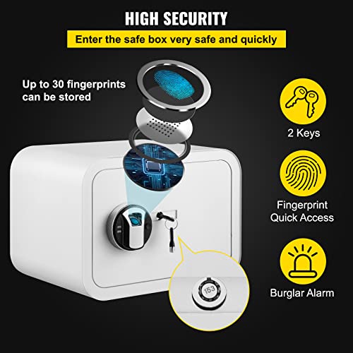 Strong Security Modes: The safe box securely stores your valuables and keeps children and unauthorized users from gaining access with 2 reliable lock systems and a burglar alarm. You can enter the safe box very securely and quickly with 2 keys or fingerprints.
